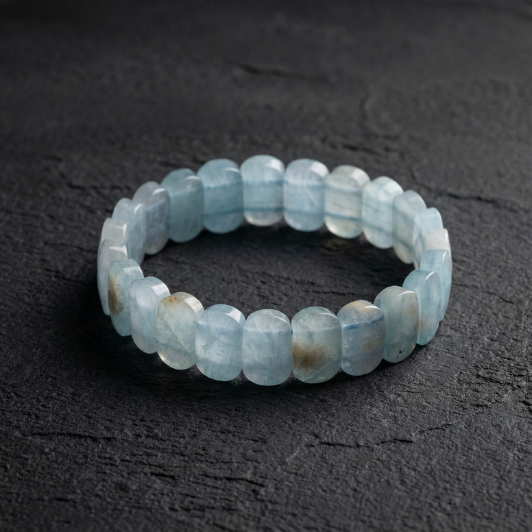 Akuamarin Doğal Taş Geniş Kesim Bileklik (Rolex Stil)