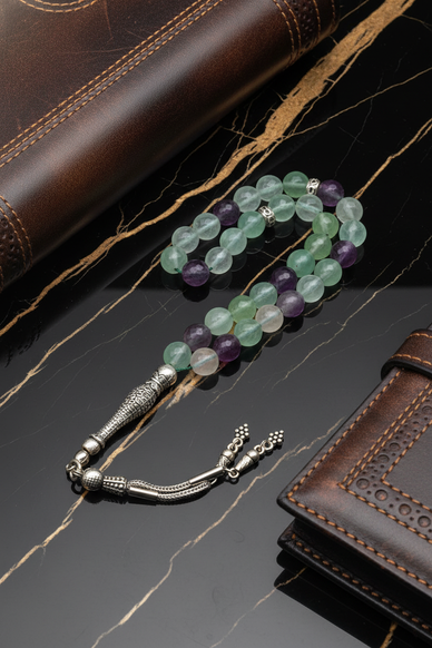 Florit Doğal Taş Tesbih, fasetli kesimi sayesinde ışığı mükemmel şekilde kıran parlak yüzeyi, doğal renk geçişleri ve gümüş oksit kaplama detaylarıyla özel bir koleksiyon parçası niteliğindedir. Her taşın fasetli dokusu, tesbihe dikkat çekici bir canlılık ve premium bir duruş kazandırır.