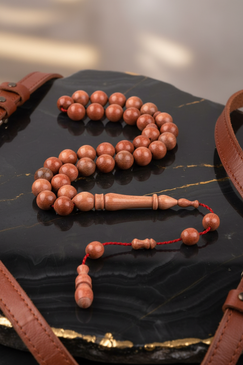 Harnup ağacı, dayanıklı yapısı, doğal sıcak tonları ve hafifliği ile geleneksel tesbih yapımında en çok tercih edilen ağaç türlerinden biridir. Bu modelde kullanılan taneler, İstanbul kesim formuyla elde rahatça akan ergonomik bir dizilime sahiptir. Usta işçiliğiyle şekillendirilen her tane, doğal dokusunu koruyarak sade, zarif ve klasik bir tesbih görünümü sunar.